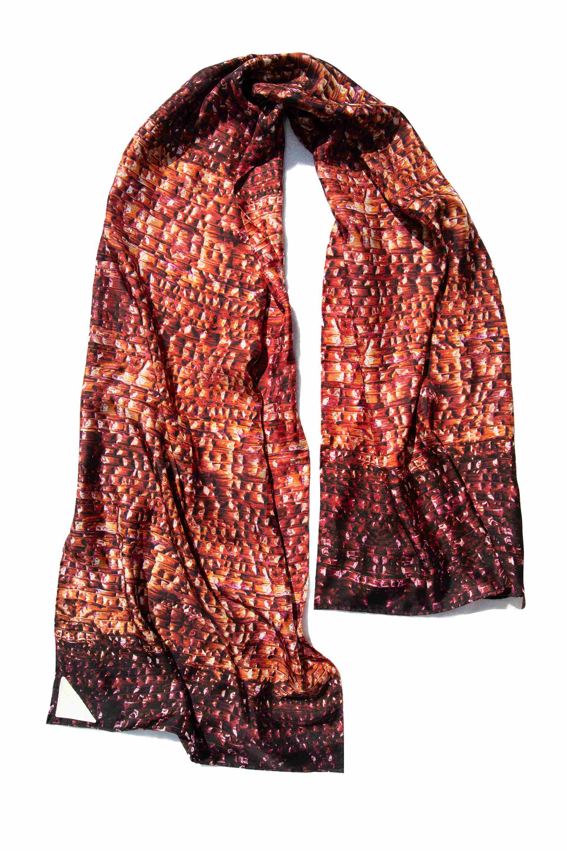 Cette étole en soie Amel Batita est une toile vivante pour raconter l’histoire unique de sa toile d’origine.