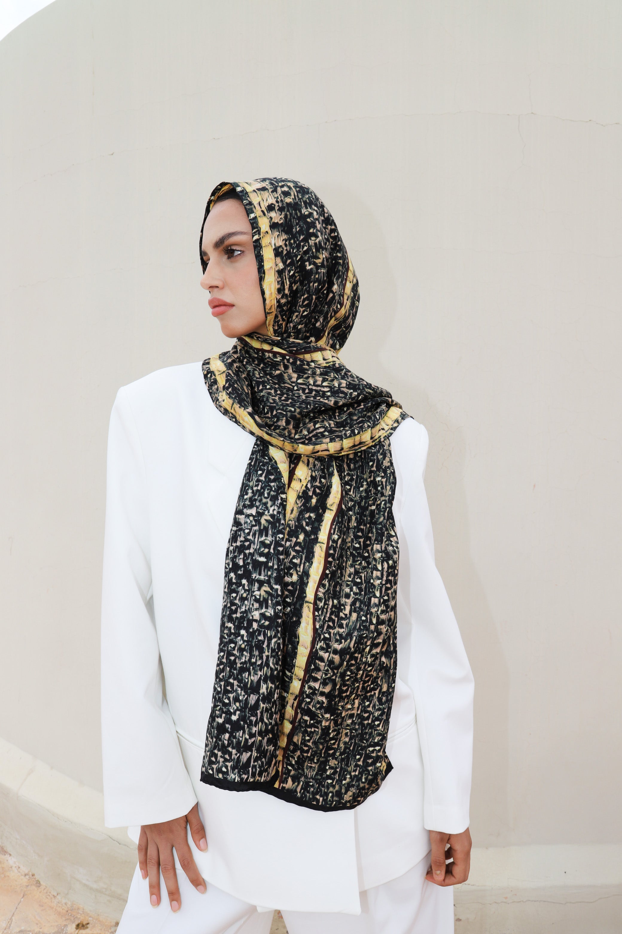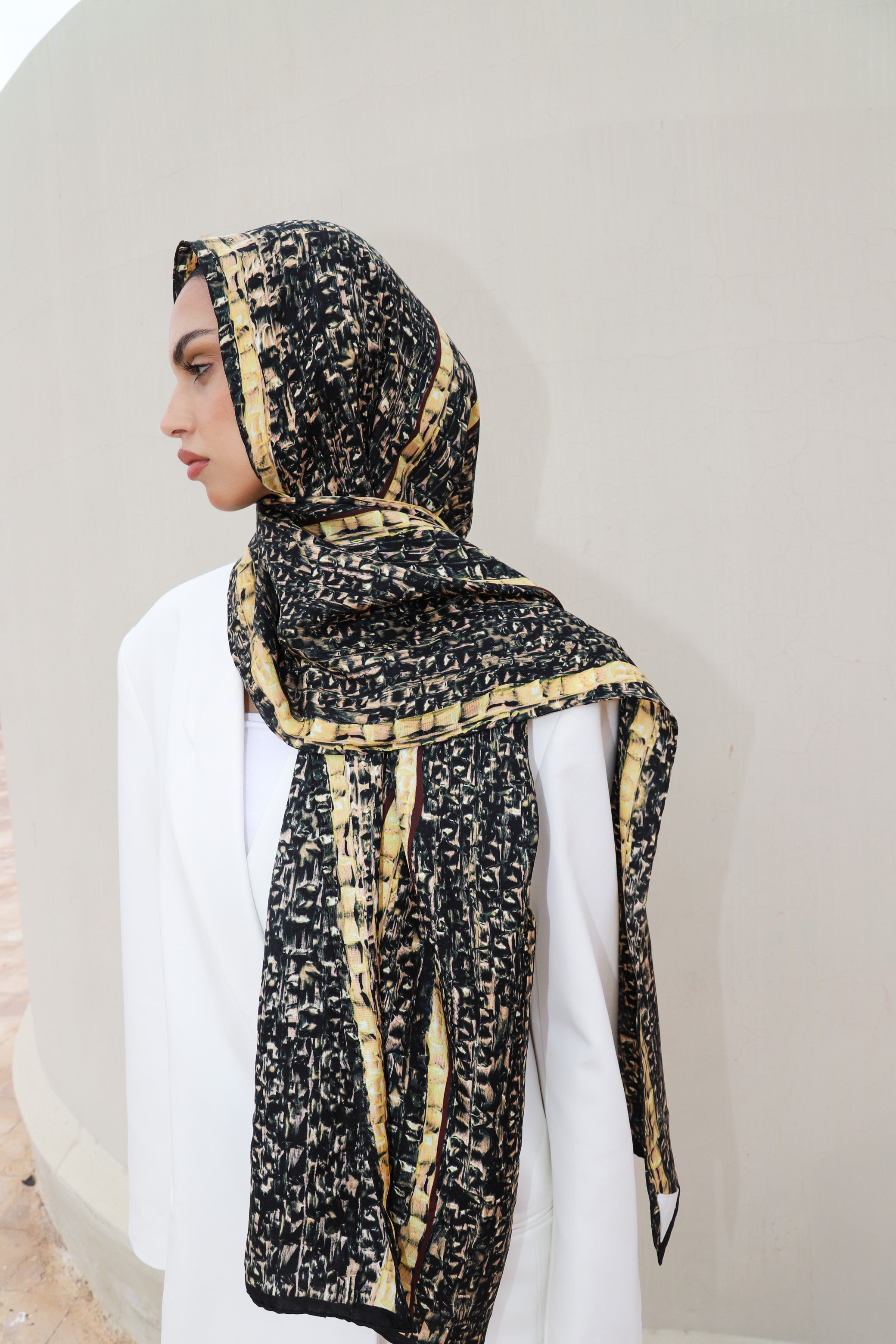 Découvrez l’élégance intemporelle avec notre étole en twill de soie, une véritable œuvre d’art signée Amel Batita.