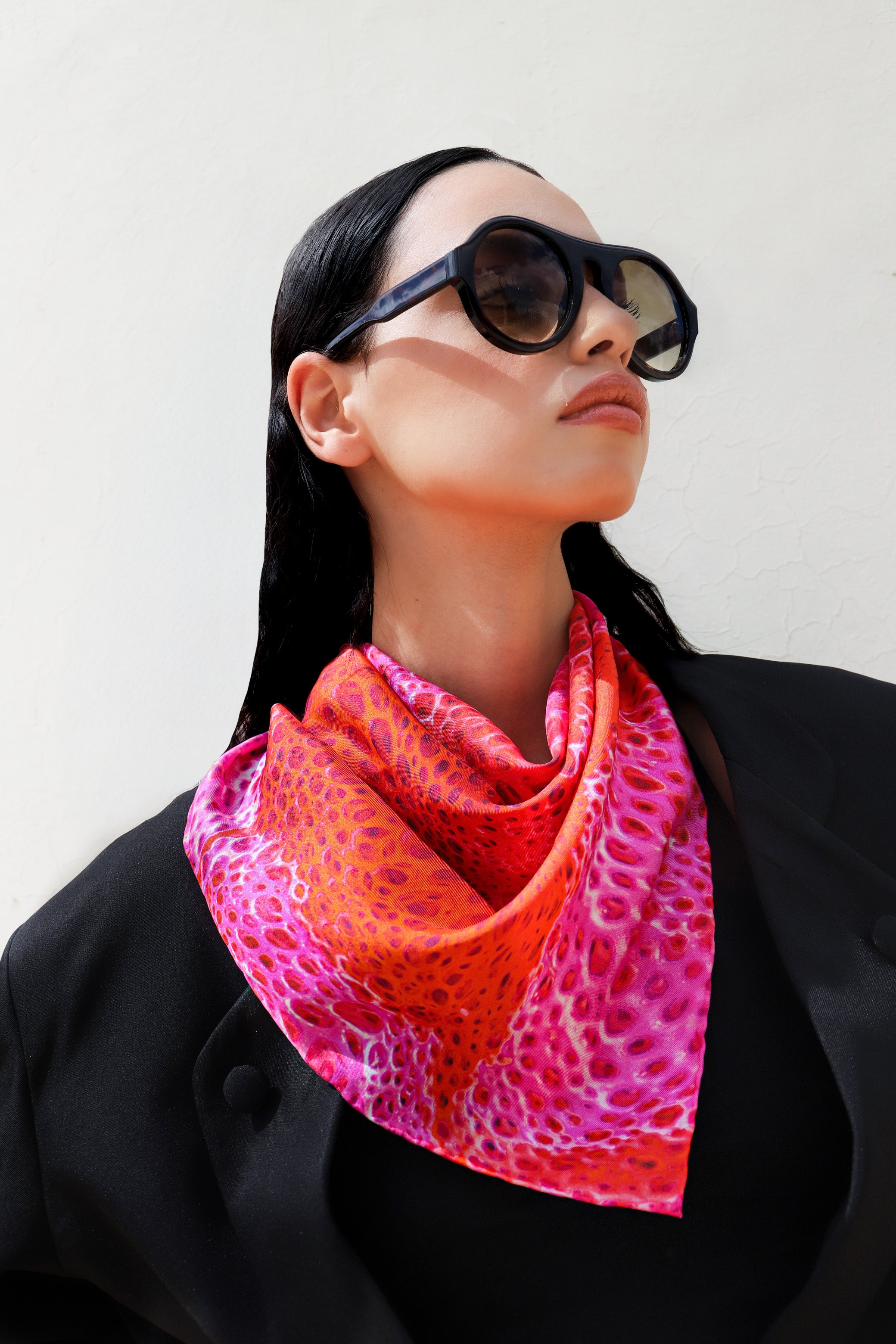 Laissez-vous envoûter par le carré de soie exclusif Amel Batita, une pièce où l’audace rencontre l’unicité grâce à l'artcycling. Inspiré par l'essence sauvage des motifs animaliers, ce foulard, réalisé à la main à Paris par la designer Amel Batita, est un véritable accessoire de mode en soie.
