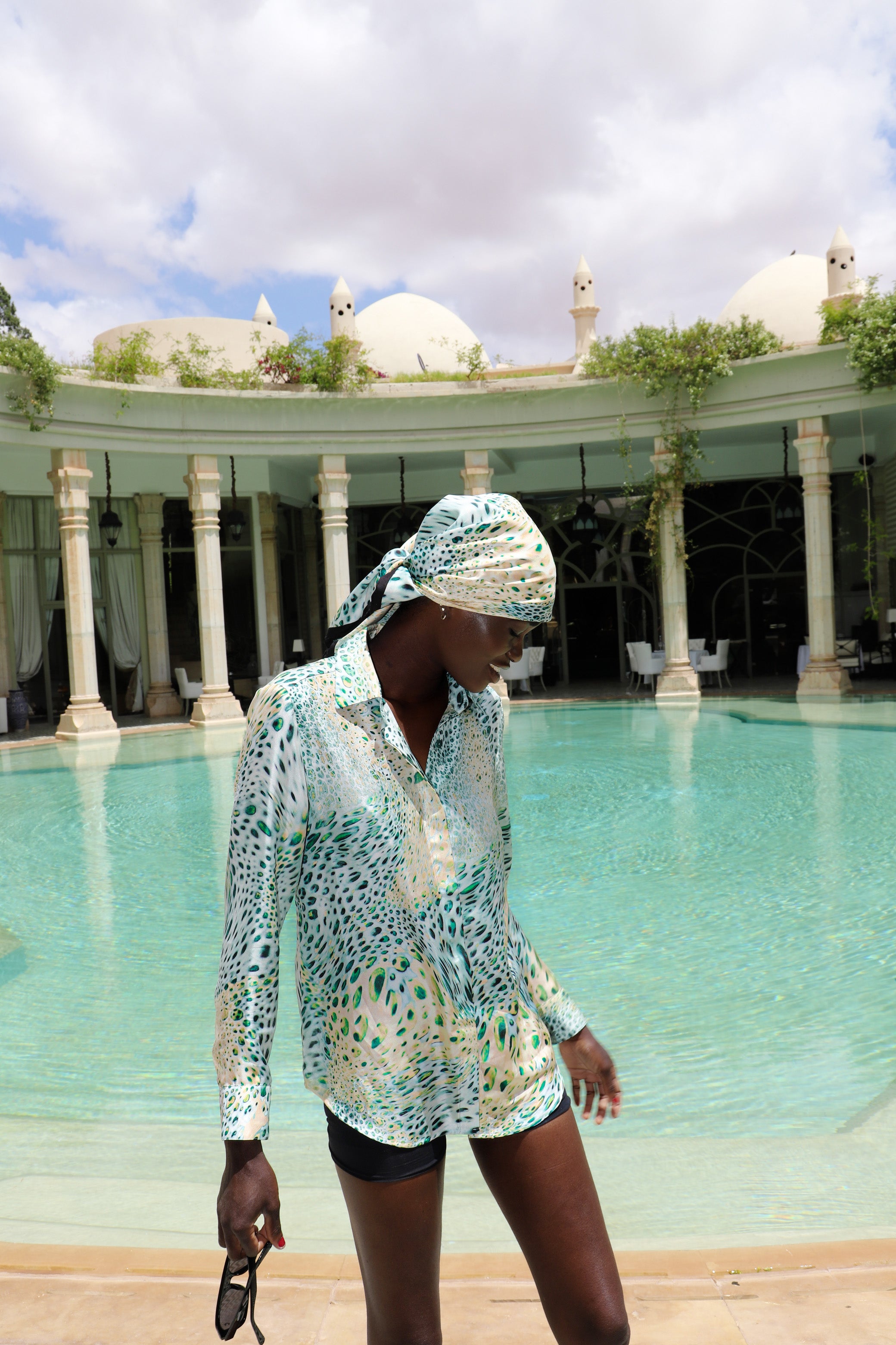 Coupe fluide unisex, teinte crème, twill de soie 100% italienne.